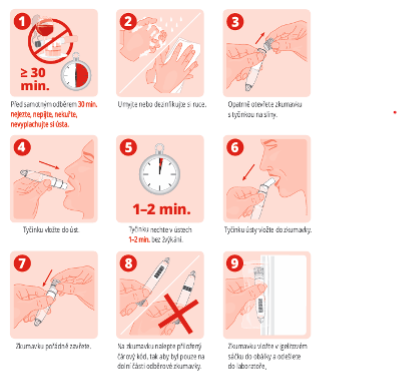 Při odběru slin dodržujte následující pokyny: