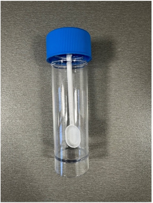 - Pomocí lopatky naberte kus vzorku stolice ve velikosti lískového oříšku.