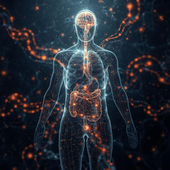 - Mezi střevem a mozkem existuje propojení (osa střevo–mozek), které umožňuje vzájemnou komunikaci a může ovlivňovat náladu či stresovou reakci.
