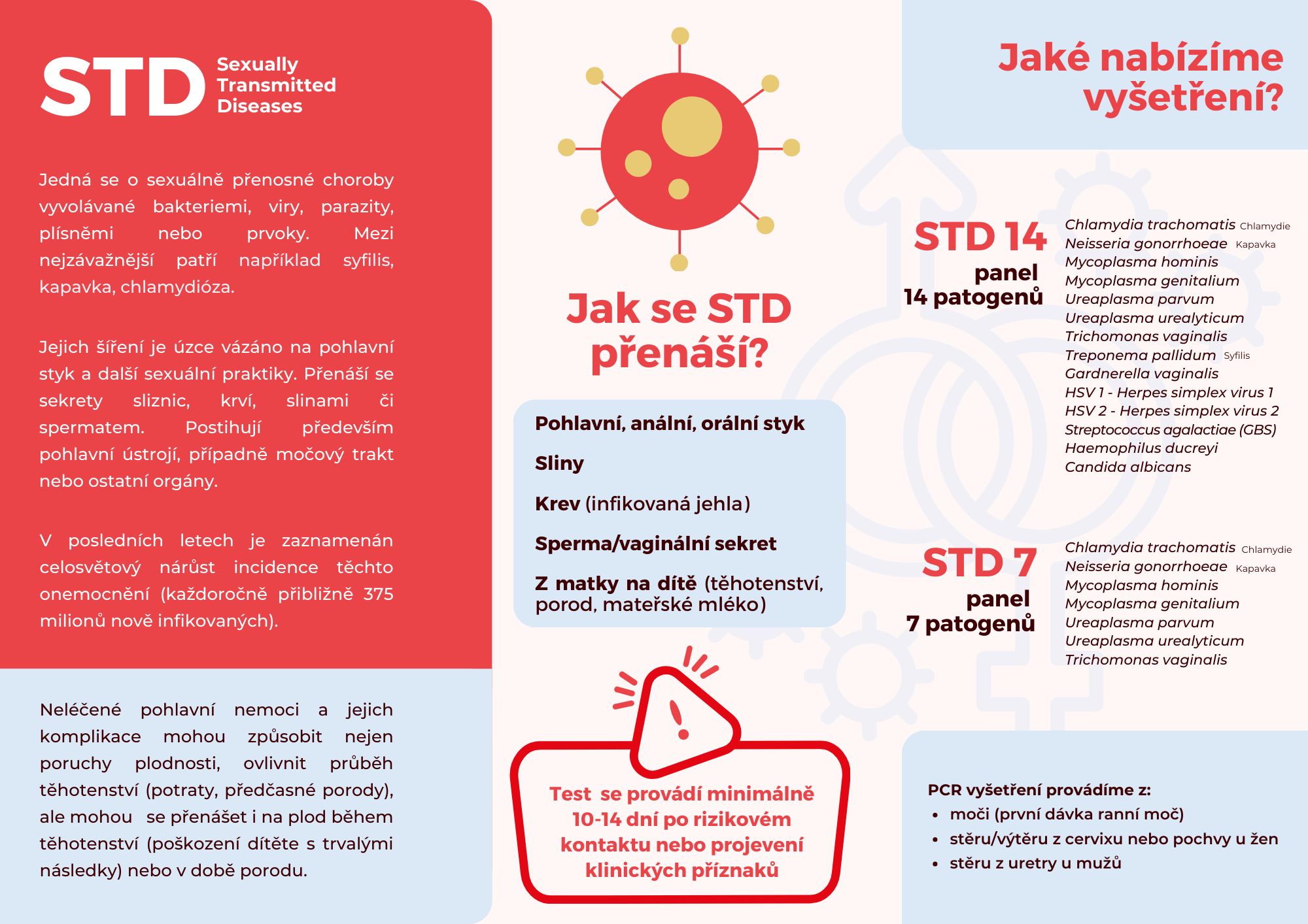 Balíček vyšetření STD 7 z moči zahrnuje testování na sedm nejčastějších původců STD, jež mohou být přenášeny sexuálním kontaktem. Tento balíček je ideální volbou pro ty, kteří chtějí provést rychlou a efektivní kontrolu svého zdravotního stavu v souvislosti s potenciální expozicí STD patogenům. Test je vhodný pro muže i ženy a provádí se jednoduše odběrem vzorku moči, což zajišťuje vysokou míru diskrétnosti a komfortu během samotného testování.